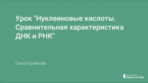 Вопросы биохимии - это трудные темы в курсе общей биологии, а для учеников 9-х классов они часто вообще непонятны. На уроке "Строение нуклеиновых кислот. Сравнительная характеристика ДНК и РНК", я использую разные формы работы для того, чтобы ученики с разным уровнем подготовки могли комфортно чувствовать себя и, выходя с урока, испытывали эмоциональный подъем от решенной трудной задачи.