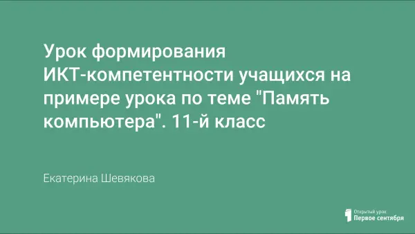 Память компьютера – это не новое понятие, поэтому для таких уроков, где требуется сообщить ученикам много информации, фактов, автор выбрала такую форму урока как самостоятельная работа в малых группах, а затем выступление с коротким докладом в форме презентации. В таком случае учащиеся самостоятельно добывают информацию, обрабатывают ее, создают новую информацию и представляют ее, а также оценивают сообщения других. Такая форма позволяет активизировать интерес учащихся, их деятельность на уроке.