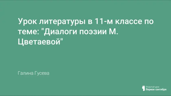 Урок литературы в 11-м классе "Диалоги поэзии М. Цветаевой" представлен в форме семинара, одного из ведущих видов работы в старших классах. Материалы урока развивают умение анализировать лирические произведения поэтов разных литературных направлений.