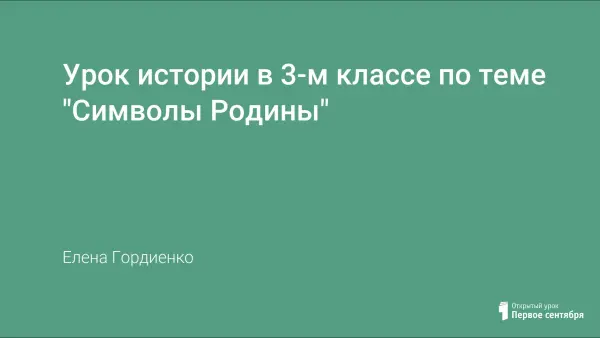 Урок истории в 3-м классе по учебнику «В гостях у истории» Лупоядова. Урок проводится после изучения темы «Геральдика». На данном уроке ученики знакомятся с понятием «символы Родины» и с символами суверенитета России: флагом, гербом, гимном, а также с историей их появления. Урок проводится с использованием компьютерных технологий: используются возможности интерактивной доски и презентация.