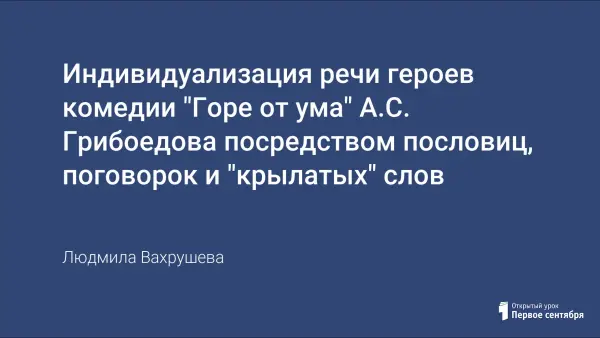 Основная задача урока - проследить новаторские приёмы А.С. Грибоедова в индивидуализации речевых характеристик героев комедии "Горе от ума".