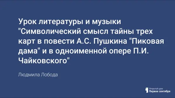Урок литературы и музыки "Символический смысл тайны трёх карт в повести А.С. Пушкина "Пиковая дама" и в одноимённой опере П.И. Чайковского"