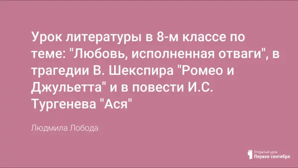 Урок литературы в 8-м классе по теме: "Любовь, исполненная отваги", в трагедии В. Шекспира "Ромео и Джульетта" и в повести И.С. Тургенева "Ася"