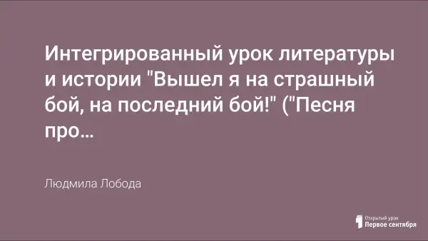 Интегрированный урок литературы и истории "Вышел я на страшный бой, на последний бой!" ("Песня про царя Ивана Васильевича, молодого опричника и удалого купца Калашникова")