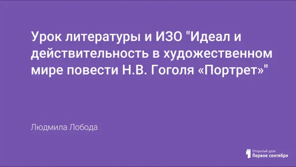 Урок литературы и ИЗО "Идеал и действительность в художественном мире повести Н.В. Гоголя «Портрет»"