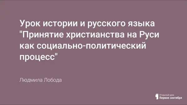 Урок истории и русского языка - поисковое занятие, раскрывающее не только историческое значение введения православия, но и неизбежные отрицательные черты этого болезненного процесса. В описании картины С.Иванова "Христиане и язычники", отражающей суть социального противостояния эпохи, глубоко постигается её характер, а также практически применяются знания о роли причастия в русской речи, реализуются в игровой форме творческие способности детей.