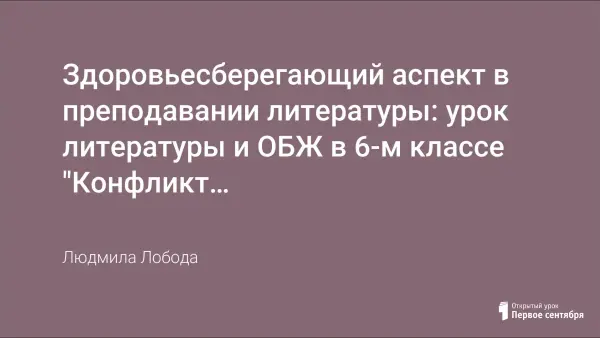 Урок литературы и ОБЖ в 6-м классе разработан с учётом здоровьесберегающего аспекта в содержании филологического образования. В размышлениях о нравственной природе поступков героев, об отношениях людей, о смысле жизни, об ответственности каждого за зло мира, а также в поисковой работе с текстом формируются коммуникативная и социальная компетенции.