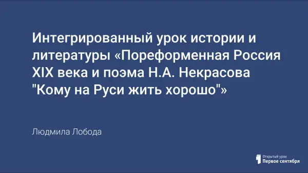 Интегрированный урок истории и литературы «Пореформенная Россия XIX века и поэма Н.А. Некрасова "Кому на Руси жить хорошо"»