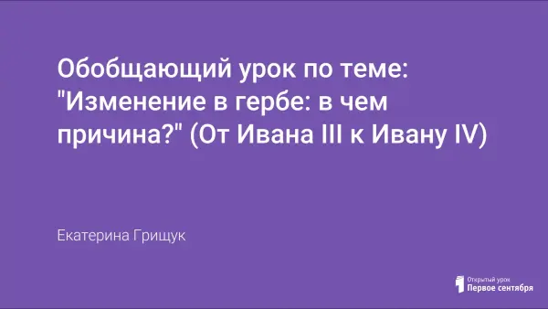 В России государственные символы стали строго регламентированы только в конце ХIХ века. До этого изображение государственного герба менялось при каждом новом царствовании. При подробном знакомстве с историей России соответствующего периода видишь, что эти изменения не случайны и, как и во всяком символе в гербе воплощается основная идея того или иного исторического периода. Именно этот факт и использован для обобщения материала по истории России конца ХV - начала ХVI века, завершающего периода в образовании Российского централизованного государства.
