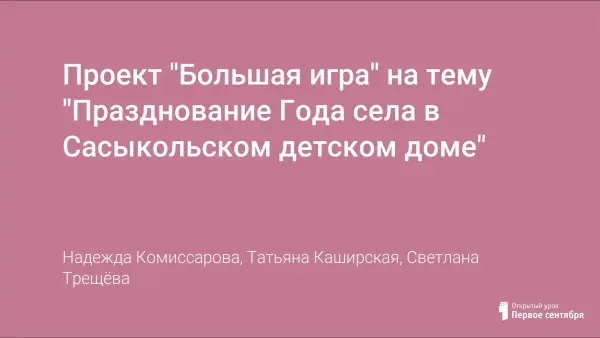По форме получаемого продукта данный проект многообразен – это и мультимедийный продукт презентация «Наше село в прошлом и настоящем», буклеты «Красная книга», где собраны редкие представители флоры и фауны окрестностей села и района, «Книга памяти», где собраны фотографии ветеранов войны, жителей, села и погибших воинов, экологический спектакль «Береги природу», фольклорный обрядовый праздник «Сватовство».