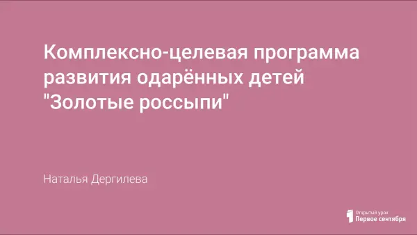 В рамках реализации ПНПО на первый план выдвигается основная задача современного образовательного учреждения: организация сотрудничества педагогов, родителей, учащихся и социума, направленного на качественное становление личности ребенка, умеющей жить в гармонии с собой и окружающим миром. Поэтому каждой школе необходима своя комплексно-целевая программа развития одаренных детей, чья одаренность на данный момент может быть еще не проявившейся, а также просто способных детей, в отношении которых есть серьезная надежда на качественный скачок в развитии способностей.