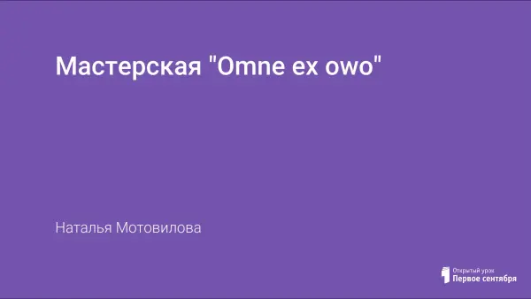 «Omne ex owo» - «все из яйца» - так переводится это название. Данное занятие проводится при изучении в курсе зоологии строения яйца птиц. Цель мастерской — посредством творческого поиска обеспечить понимание учащимися уникальности устройства яйца птиц и развёртывания программы формирования цыплёнка.