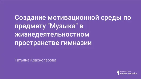 Данная статья представляет некоторый опыт работы по созданию мотивационной среды в инновационном образовательном учреждении. В ней определены положения и ориентиры, направленные на создание мотивационной среды, в соответствии с ведущим документом - программой развития. Статья несёт функции организационной, методической и научно-исследовательской деятельности, что будет полезно не только учителям музыки, но и учителям-предметникам различных учебных дисциплин, а также руководящим работникам, желающим повысить мотивацию учащихся в образовательных учреждениях различного типа.