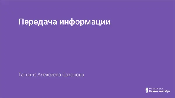 Текст урока включает способы передачи информации, язык передачи информации, формирует понятие канала связи, даёт представление о помехах, возникающих при передаче информации и способах их устранения, рассказывает о современных средствах связи. Продолжение урока - посещение выставки "Информатика и связь".