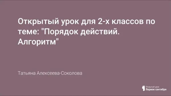 Разработка урока для учащихся 2-х классов. Текст урока помогает закрепить порядок действий на правиле перехода улицы, на основных моментах режима дня учащегося. На уроке ученики знакомятся с новыми понятиями: "алгоритм", "выполнение алгоритма", "получение результата". Учащиеся убеждаются, что не всякий порядок действий приводит к желаемому результату. Иногда нарушение порядка действий или пропуск одного из этапов этого порядка может привести к трагическим последствиям. Конечным итогом урока является выполнение алгоритма рисования в приложении PAINT красивой ветки винограда.