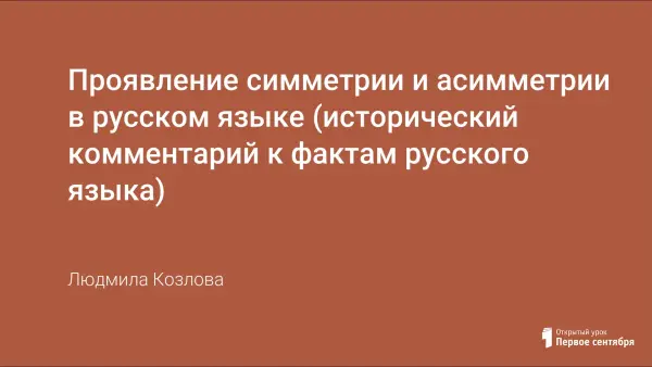 Идеи симметрии и асимметрии выходят далеко за рамки геометрии, они лежат в основе любой классификации. Проследим, как симметрия и асимметрия проявляются в языке. Исторические закономерности помогут объяснить правила современного языка. Предложенная система уроков поможет организовать факультативные занятия по истории языка или включить их в тематическое планирование как НРК.