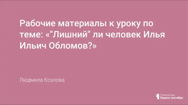 первого урока по роману И.А. Гончарова “Обломов”.