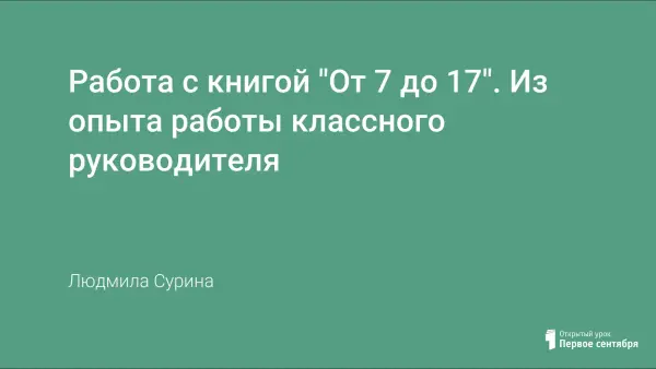 Книга "от 7 до 17" — детище, рожденное педагогами школы № 107 г. Челябинска. Работа с этой формой личностно-ориентированного мониторинга позволяет классному руководителю эффективно организовать образовательную деятельность в классе с привлечением к этому процессу семьи и общественности. Книга состоит из стольких глав, сколько детей в классе. Классный руководитель использует информацию всех страниц. Построить же траекторию развития ребенка помогает систематическая работа со страницей классного руководителя.