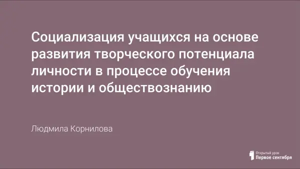 Индивидуальность человека максимально реализуется лишь в тех культурных формах, которые в наибольшей степени соответствуют изначальной потенциальности, предзаданности его развития. Поэтому так необходимо раскрыть духовные силы, зреющие в ребенке, создать благоприятные, природосообразные условия для их созревания и развития, а не насильственно форсировать эти процессы. Большую роль здесь играют мотивы, особенно внутренние. В статье предлагаются и обосновываются основные формы работы по социализации личности на уроках истории и обществознания.