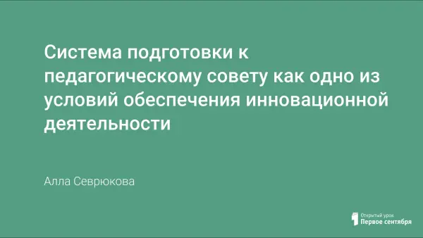 В данной работе описывается опыт МОУ СОШ № 107 г. Челябинска по разработке технологии процесса включения каждого педагога в инновационную деятельность в рамках подготовки педагогическому совету. Подчеркнем исключительную роль педагогического совета в повышении мотивации педагогов для участия в инновационной деятельности. Кафедры "выращивают" учителя, ориентируя его на научный поиск, направленный на реализацию идей современного образования.