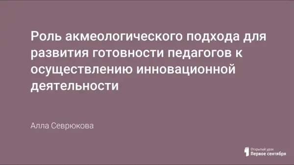 В работе "Роль акмеологического подхода в развитии готовности педагогов к осуществлению инновационной деятельности" раскрыта сущность этого подхода. Также представлена таблица "Пути достижения уровней готовности педагога к осуществлению инновационной деятельности".