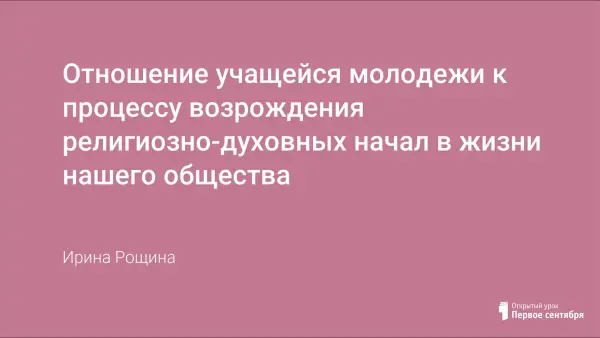 В течение 2011–2012 года на базе школы № 8 г. Мончегорска учитель вместе учащимися провели исследование на отношение учащейся молодежи к процессу возрождения религиозно-духовных начал в жизни нашего общества. Как и предполагалось, большинство учащихся связывает этот процесс с необходимостью возрождения нравственного потенциала общества, с поиском нравственных идеалов, нравственных ориентиров в жизни каждого человека.