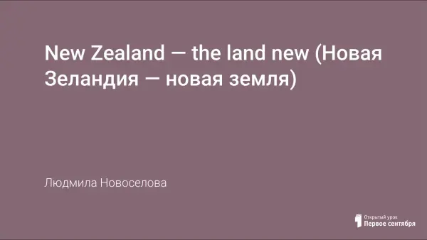 "New Zealand - the land new" - само название содержит игру слов. Так же и представленная разработка содержит игровые моменты и вместе с тем, привлекает учащихся к обычаям, культуре и традициям одной из англо-говорящих стран - Новой Зеландии. Творческая атмосфера, интерес к переработке предлагаемых материалов создают дополнительную мотивацию в обучении иностранному языку.