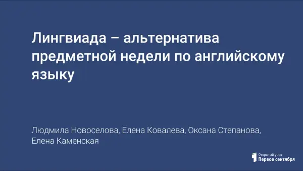 "Лингвиада - альтернатива предметной недели по английскому языку". Предметная неделя - это традиционная форма, цель которой - расширение кругозора учащихся, формирование интереса к изучаемому предмету. Данная работа предлагает модель альтернативного (общегородского) мероприятия "Лингвиада". Описывает технологию и опыт его проведения.