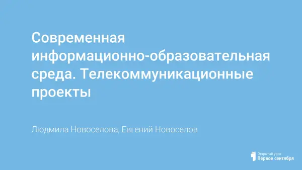 Информационно-образовательная среда – это новые возможности для взаимодействия учителя и ученика. В данной работе рассматриваются основные виды телекоммуникационных проектов, положительный эффект от их применения на основе английского языка. Описывается опыт участия, проблемы и трудности, с которыми можно столкнуться в процессе выполнения такого проекта.