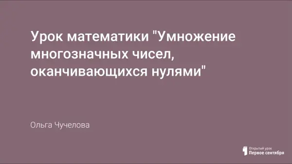 Конспект урока математики в 3 классе по теме "Умножение многозначных чисел, оканчивающихся нулями". Программа "Школа 2100". Цель моей работы развитие у учащихся самостоятельной деятельности: развитие целеполагания, самоконтроля, умение планировать свою деятельность.