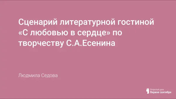 Цель литературной гостиной: познакомить детей с творчеством С.Есенина, раскрыть основные темы его поэзии.