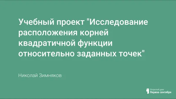 Умение решать задачи является одним из основных показателей уровня математического развития, глубины освоения учебного материала. Надо научиться такому подходу к задаче, при котором задача выступает как обьект тщательного изучения, а её решение - как обьект конструирования и изобретения. Рассматриваемый учебный проект предназначен для учащихся 10–11-х классов физико-математического профиля. В проекте необходимо по указанным схемам дать геометрические интерпретации, на основании их выдвинуть гипотезы, сформулировать и доказать необходимые и достаточные условия расположения корней квадратичной функции относительно заданных точек. В результате решения этой проблемы учащиеся овладеют методом, позволяющим существенно упростить решения задач данного типа.