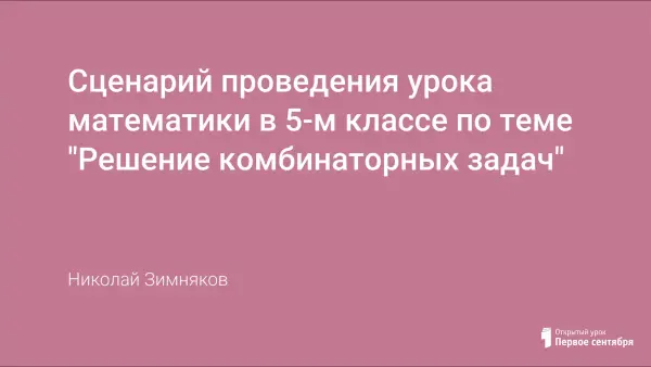 Урок проводится в быстром темпе и на высоком уровне сложности. Он знакомит учащихся с деревом возможных вариантов, правилом перемножения возможностей, перестановками, размещениями, сочетаниями, формулами числа перестановок, размещений, сочетаний и решением каждой комбинаторной задачи несколькими методами: с использованием дерева возможных вариантов.