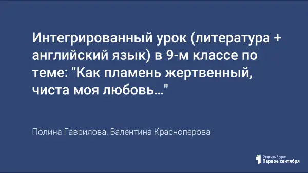 Интегрированный урок (литература + английский язык) в 9-м классе по теме: "Как пламень жертвенный, чиста моя любовь…"