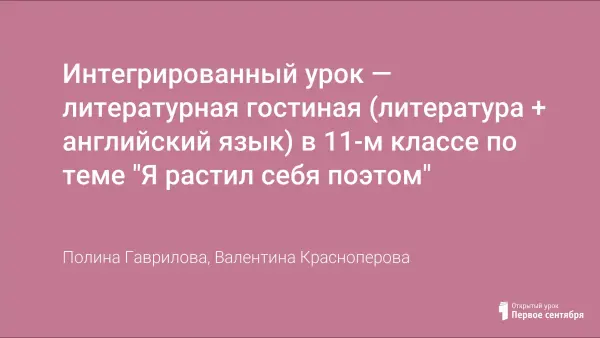 Интегрированный урок — литературная гостиная (литература + английский язык) в 11-м классе по теме "Я растил себя поэтом"