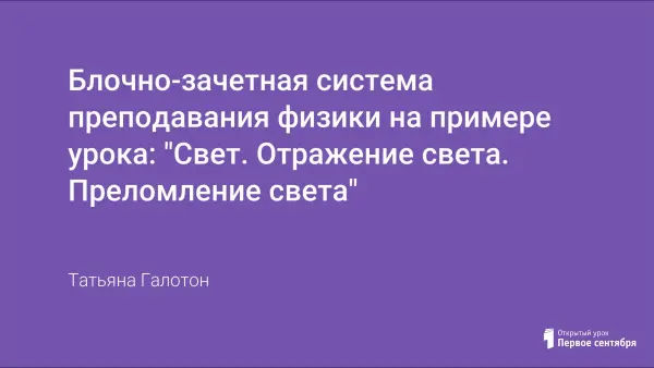 Блочно - зачетная система преподавания физики. Закрепление знаний по темам: "Свет", "Отражение света", "Преломление света".