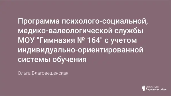 В основу программы положена интересная идея - психолого-социального, медико-валеологического сопровождения гимназистов в процессе обучения и воспитания.