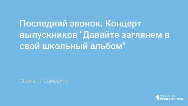 Представлен оригинальный (в стихах) сценарий традиционного концерта выпускников в День Последнего звонка , "Давайте заглянем в свой школьный альбом..." , который был проведен в МОУ СОШ п.Луговской в 2003 г.
