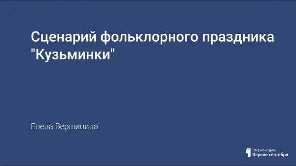 В работе предлагается фольклорный праздник "Кузьминки", который поможет участникам праздника расширить кругозор, творческий потенциал, проявить интерес, обогатиться более глубоким впечатлениям.