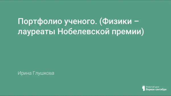 В работе рассматривается жизнь и деятельность ученых физиков - лауреатов