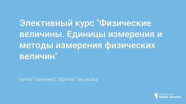 Элективный курс "Физические величины. Единицы измерения и методы измерения физических величин"