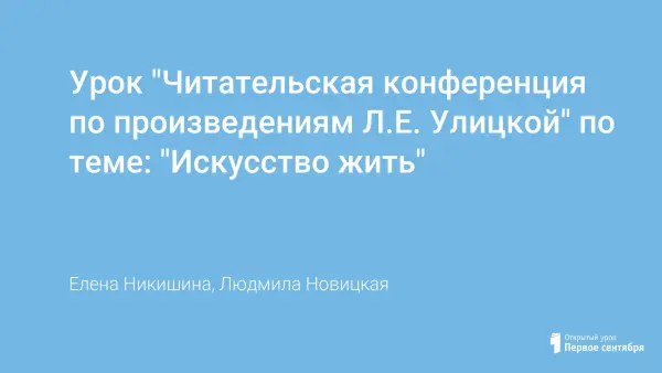 Урок "Читательская конференция по произведениям Л.Е. Улицкой" по теме: "Искусство жить"