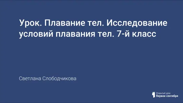 В данном материале предоставлено исследование учащимися 7-х классов условий плавания тел в жидкостях. Исследование проводится в группах по учащихся. В результате учащимися делается самостоятельный вывод по условиям плавания тел.
