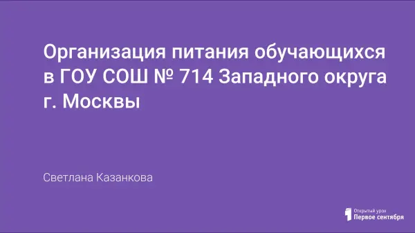Статья содержит краткие сведения об организации питания в школе, план работы комиссии по контролю за организацией и качеством питания обучающихся, программу производственного контроля за организацией питания ГОУ СОШ № 714.