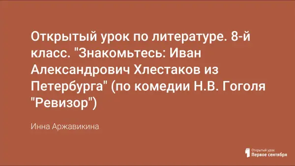 Открытый урок по литературе. 8-й класс. "Знакомьтесь: Иван Александрович Хлестаков из Петербурга" (по комедии Н.В. Гоголя "Ревизор")