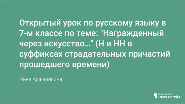 Открытый урок по русскому языку в 7-м классе по теме: "Награжденный через искусство…" (Н и НН в суффиксах страдательных причастий прошедшего времени)
