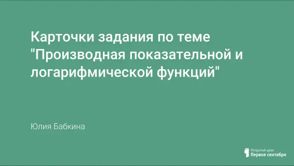 Десять карточек, в каждой из которых по четыре примера. Этот материал может быть использован как для работы в классе и дома, так и при проведении учителем самостоятельных проверочных работ. Карточки–задания позволяют выработать у учащихся навыки, необходимые для дальнейшего решения задач с использованием понятия «производная».