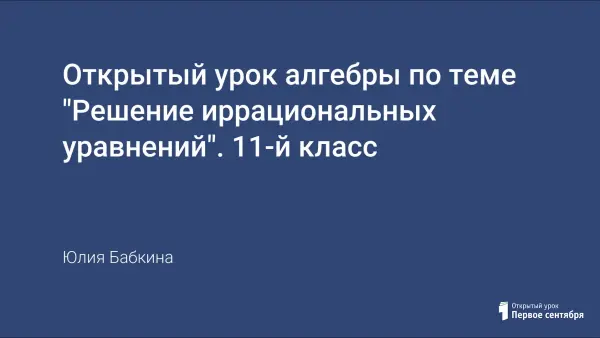 Умение решать иррациональные уравнения играет важную роль в формировании логического мышления и математической культуры у школьников, но их решение порой вызывает у них некоторые затруднения. Важно отметить, что такие уравнения постоянно предлагаются на ЕГЭ. Урок направлен на обобщение и закрепление методов решения иррациональных уравнений, знакомство новыми способами их решения, проводит экскурс в историю иррациональности.