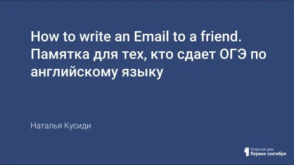 В связи с изменением вида «Задания по письменной речи» в разделе 4 экзаменационной работы по английскому языку 2021 года, необходимо научить учащихся 9-х классов писать личное (электронное) письмо в ответ на электронное письмо друга по переписке. В этой статье представлена памятка-образец, как можно написать электронное письмо на английском языке. Ее можно использовать на уроках при подготовке к экзамену ОГЭ по английскому языку в 9-х классах.