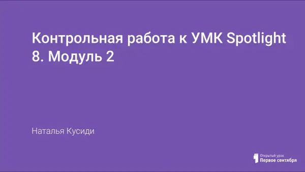 Контрольная работа составлена для учащихся 8-го класса по Модулю 2, учебное пособие Spotlight. Контрольная работа соответствует грамматическому и лексическому материалу модуля и может быть использована для проверки знаний учащихся.
